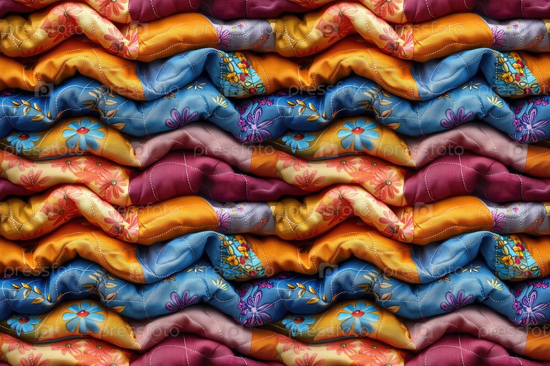 Бесшовный текстильный фон, сложенное разноцветное лоскутное одеяло из кусочков ткани