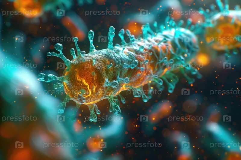 Объемная цветная иллюстрация бактерии, фон на тему микробиологии, медицины