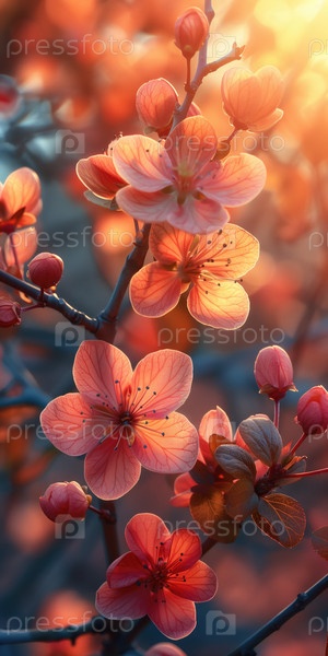 Вертикальный весенний фон, ветка цветущего абрикосового дерева с розовыми цветами