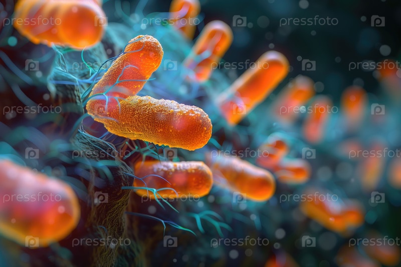 Объемная цветная иллюстрация бактерии на подложке, фон на тему микробиологии, медицины