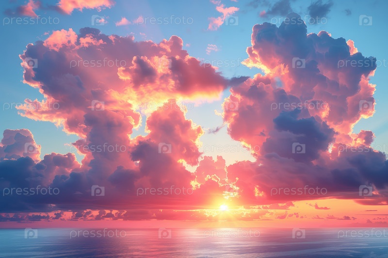 Эффектное закатное небо со светящимися облаками над морем