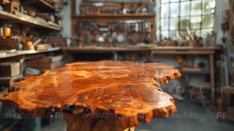 Новый дизайнерский стол со столешницей из капа в столярной мастерской