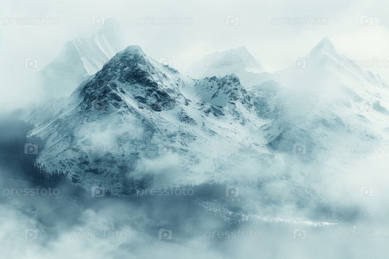 Туманное утро в горах. Пейзаж с горами и облаками