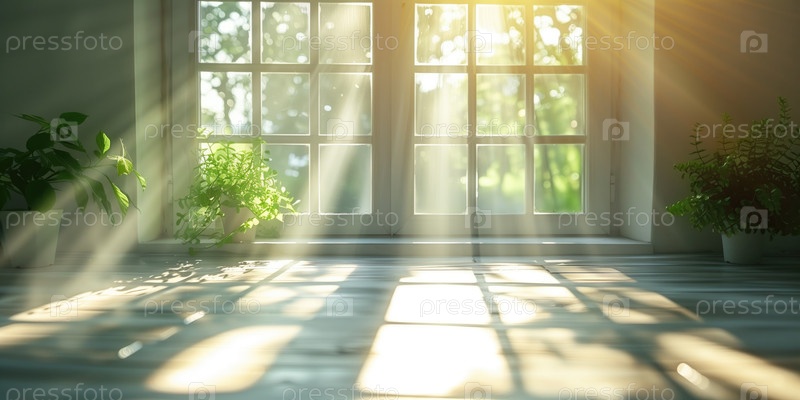 Солнце светит в комнату через стеклянные двери