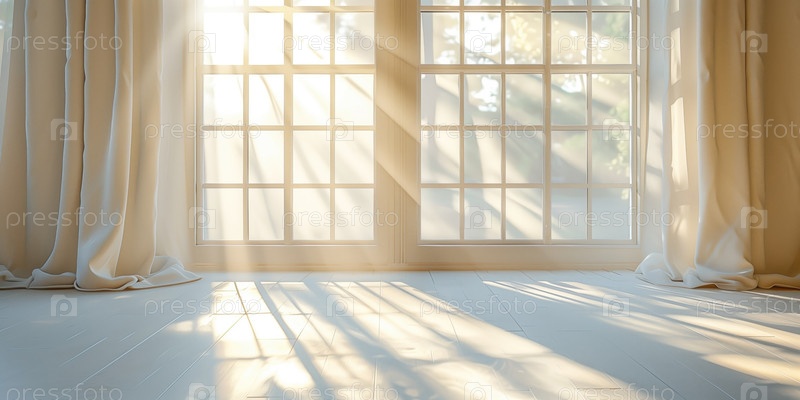 Солнце светит в зал через стеклянные двери