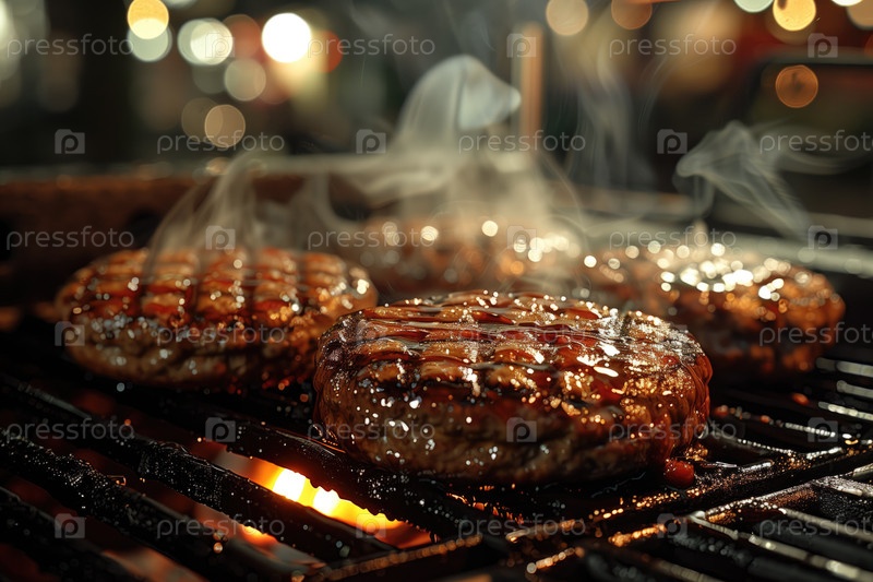 Вкусный жареный гамбургер на гриле, крупным планом. Место для текста