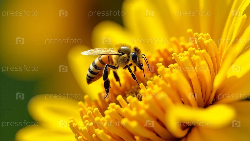 Медоносная пчела опыляет ярко-желтый цветок