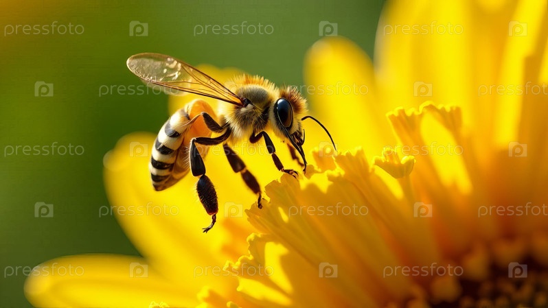 Медоносная пчела опыляет ярко-желтый цветок