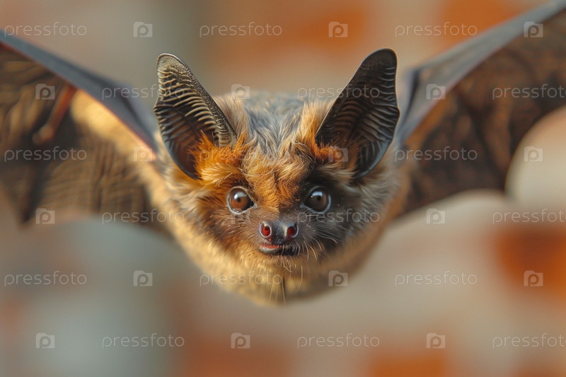 Симпатичная маленькая летучая мышь в полете крупным планом на размытом естественном фоне