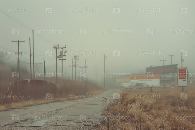 Сырой туманный день на заброшенной промышленной окраине