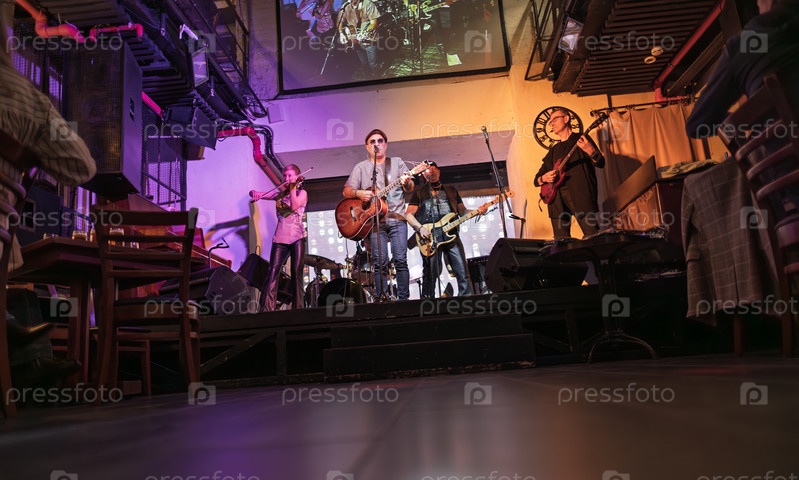 Группа выступает на сцене, рок-концерт в ночном клубе