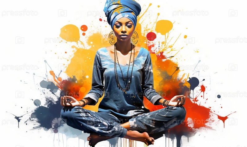 Рисунок молодой медитирующей девушки на белом фоне