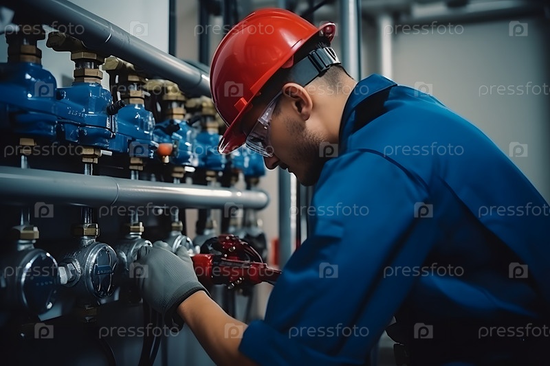 Целеустремленный мужчина-техник, регулирующий оборудование на промышленном объекте. Экспертиза в концепции технического обслуживания машин