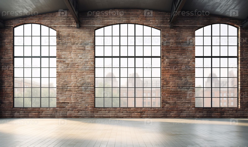 Интерьер комнаты с незаконченным ремонтом, кирпичной стеной и окном