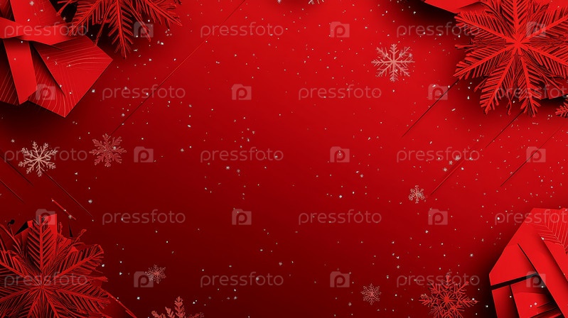 Праздничный узор снежинок на ярко-красном фоне