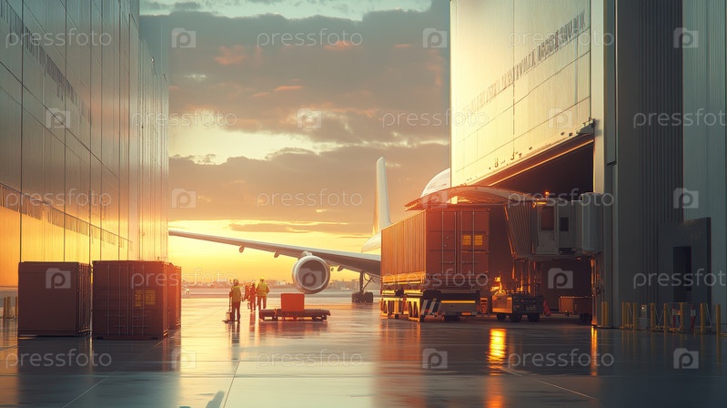 Изображение грузовых контейнеров в аэропорту, ожидающих погрузки на самолет