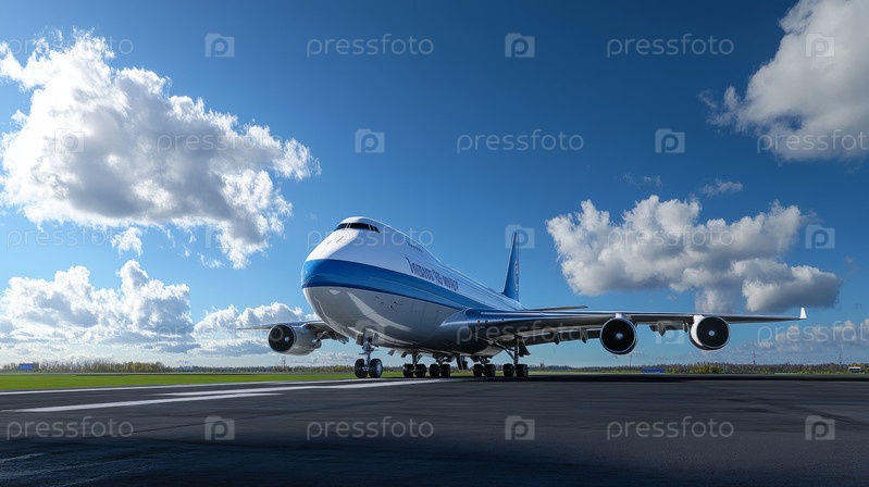 Авиалайнер Majestic готов к взлету под голубым небом