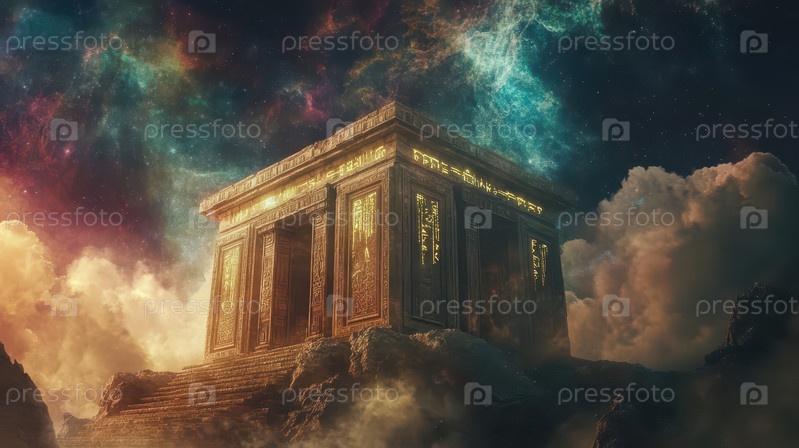 Древний космический храм, окруженный звездами и туманностями