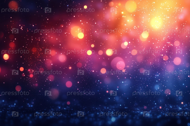 Абстрактный размытый яркий красочный неоновый фон, снегопад, искры, боке