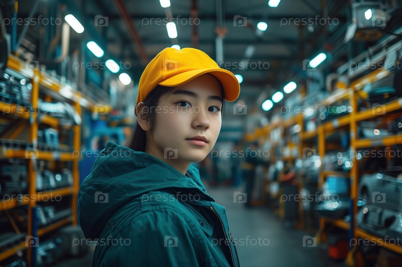 Портрет азиатской работницы, смотрящей в камеру на складе, в сфере грузоперевозок и дистрибуции