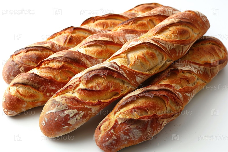 Свежеиспеченные багеты на белом фоне