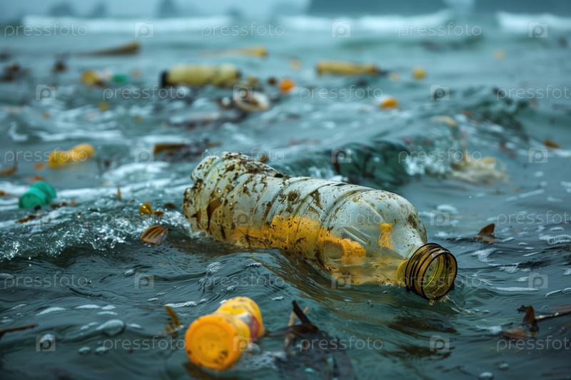 Концепция загрязнения окружающей среды, пластиковые бутылки и другой мусор в море