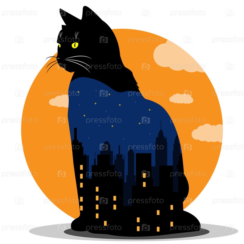 Векторная двойная экспозиция, кот и город