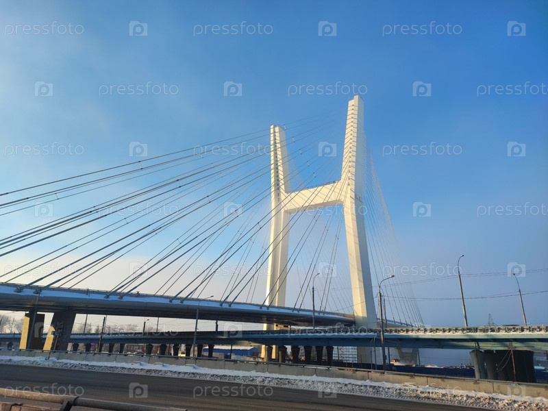 Центральный мост в городе Новосибирск. Башня или пилон с подвесами моста на площади инженера Будагова. The Central bridge in Novosibirsk. A tower or pylon with suspension bridges on Engineer Budagov Square