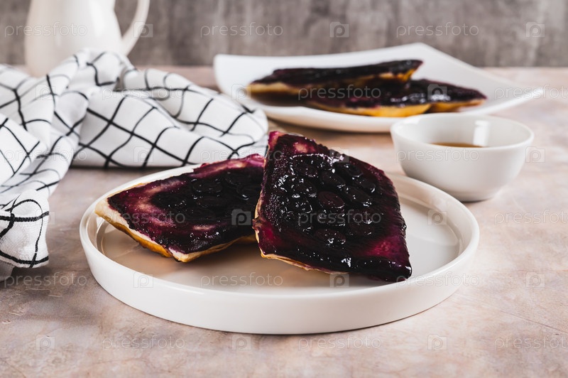 Перевернутые пироги с черникой на тарелке на столе