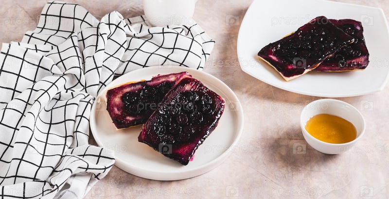 Перевернутые пироги с черникой на тарелке на столе веб-баннер