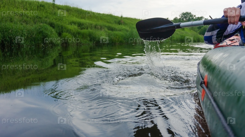 Лодка на воде. Весло ударяет по воде и раздается плеск