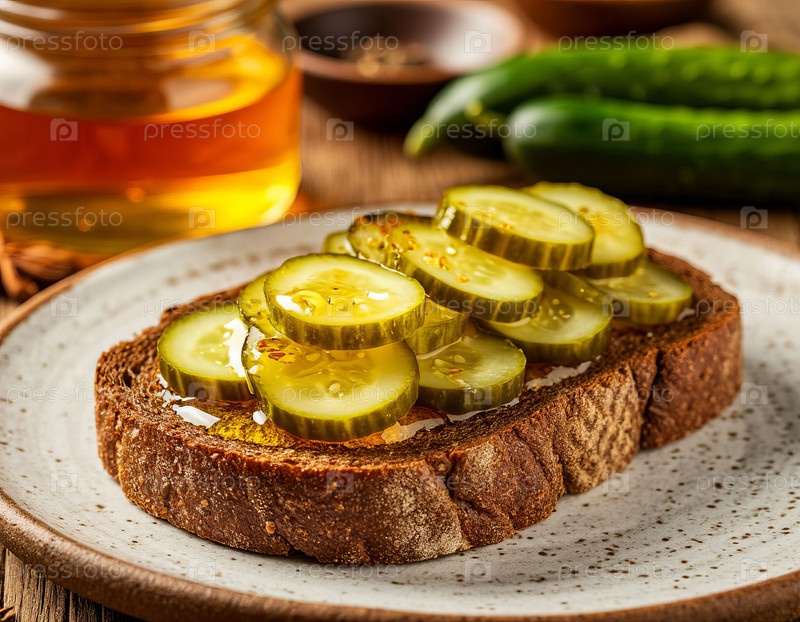 Нарезанные соленья на деревенском хлебе с медовым соусом