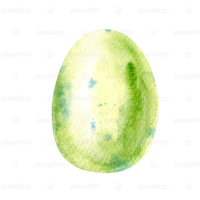 Акварельное яйцо нарисовано от руки. Пасхальное цветное яйцо. Желто-зеленый цвет. Акварельная иллюстрация, изолированная на белом фоне