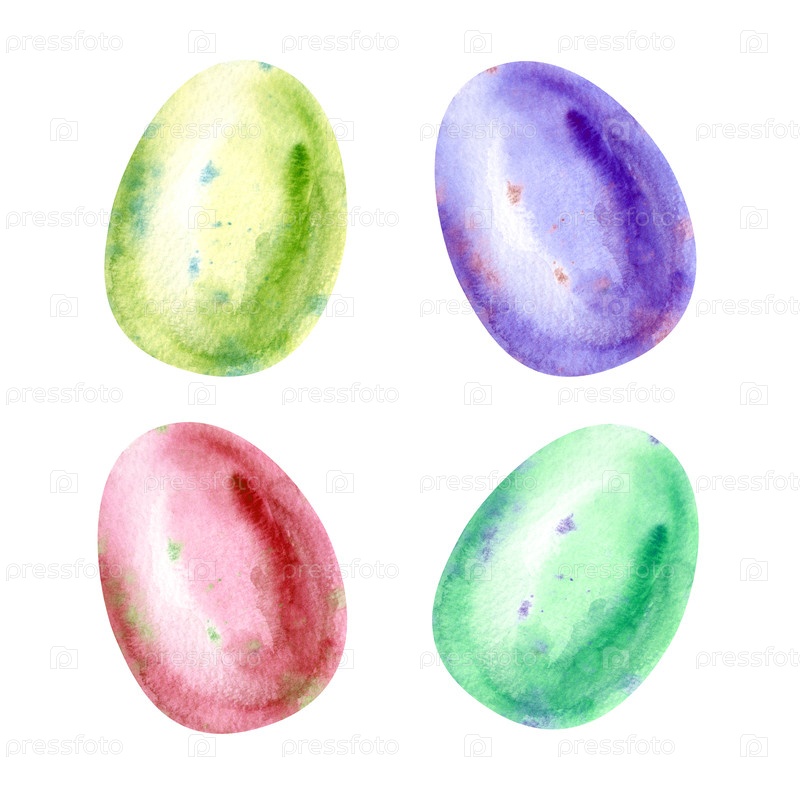 Акварельные пасхальные яйца, изолированные на белом фоне. Красочные цветные яйца. Символ праздника Пасхи нарисован вручную. Акварельная иллюстрация