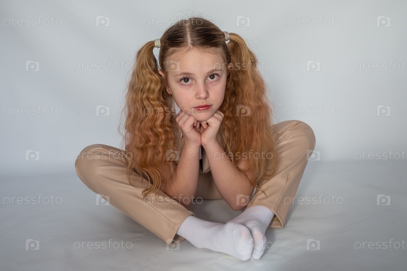 Портрет. Девочка модель в модном кожаном костюме. 2025 год. Portrait. The girl is a model in a fashionable leather suit. 2025