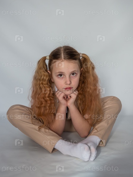Портрет. Девочка модель в модном кожаном костюме. 2025 год. Portrait. The girl is a model in a fashionable leather suit. 2025