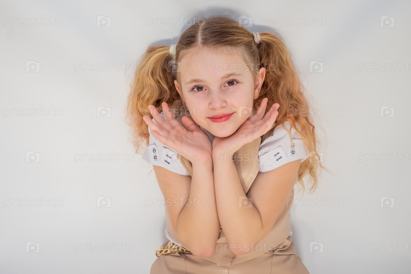 Портрет. Девочка модель в модном кожаном костюме. 2025 год. Portrait. The girl is a model in a fashionable leather suit. 2025