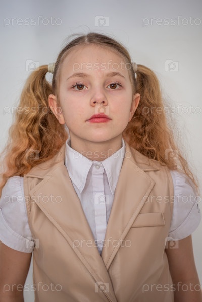 Портрет. Девочка модель в модном кожаном костюме. 2025 год. Portrait. The girl is a model in a fashionable leather suit. 2025