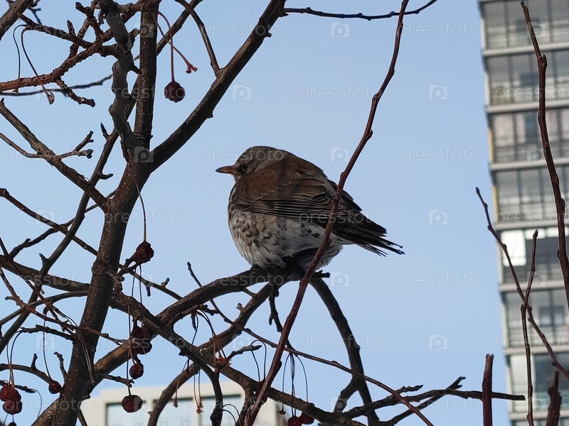 Дрозд рябинник в городе, Новосибирск. Mountain ash thrush in the city, Novosibirsk