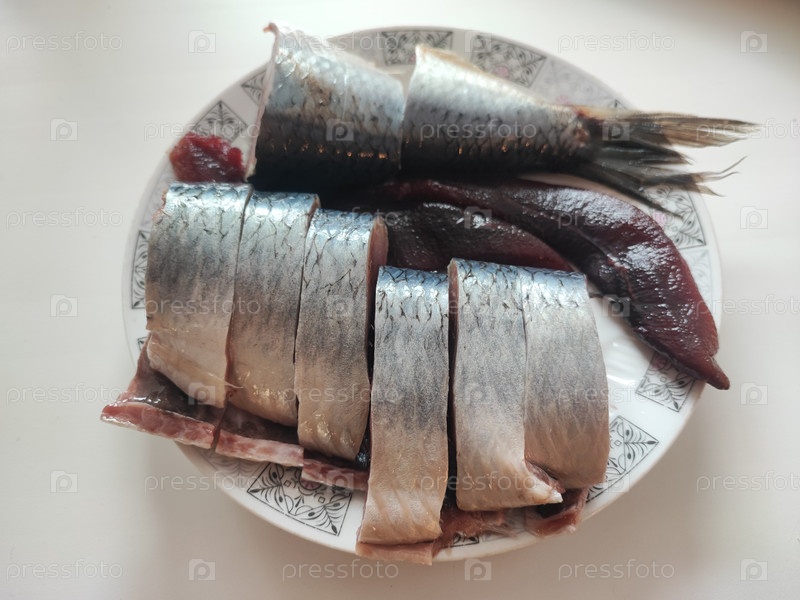 Сельдь с икрой на тарелке. Herring with caviar on a plate