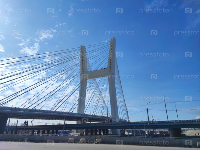 Центральный мост в городе Новосибирск. Башня или пилон с подвесами моста на площади инженера Будагова. The Central bridge in Novosibirsk. A tower or pylon with suspension bridges on Engineer Budagov Square