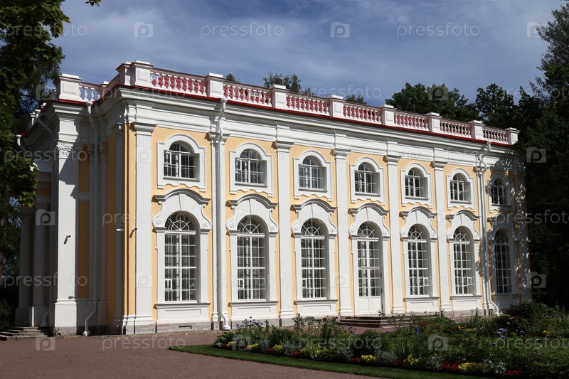 Санкт-Петербург, Россия, 20 августа 2024 г.: Фасад павильона Каменный зал на территории дворцово-паркового ансамбля Ораниенбаум