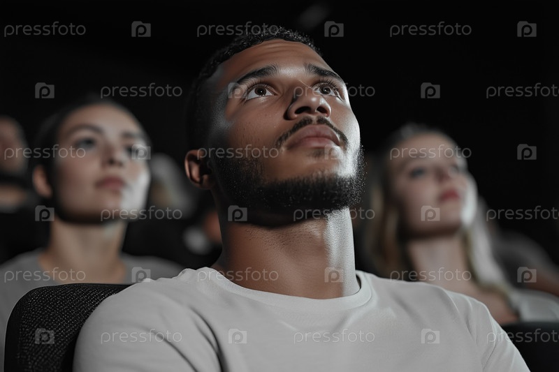 Молодой афроамериканец смотрит фильм в кинотеатре