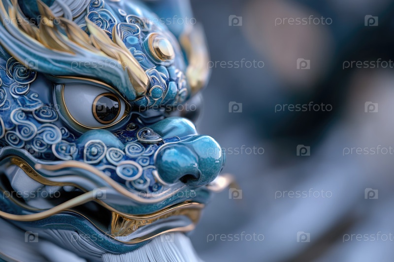 Крупный план головы синей статуи китайского дракона