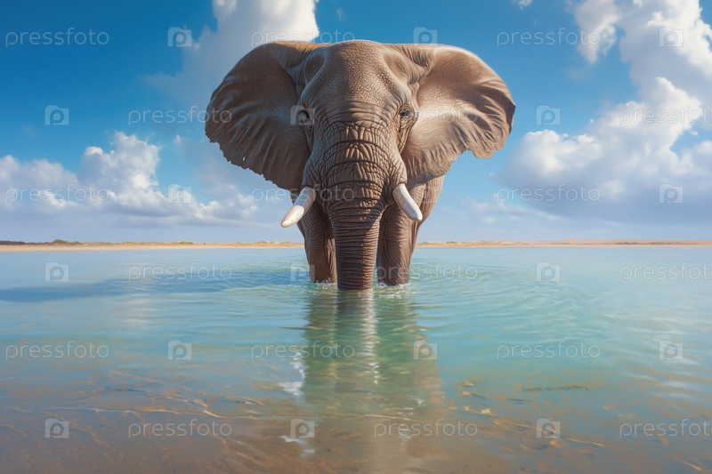 Африканский слон пьет воду из озера в саванне