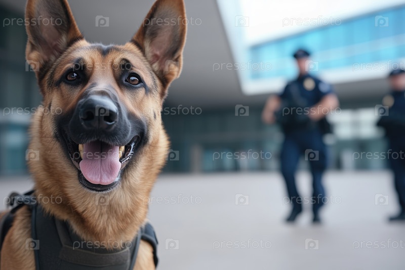 Таможенная собака в аэропорту перед таможенниками
