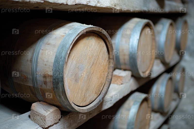Старые винные бочки в погребе винодельни. Виноделие