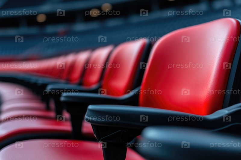Ряды пустых красных сидений на футбольном стадионе, крупный план