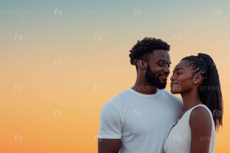 Улыбающаяся афроамериканская пара смотрит друг на друга на фоне заката