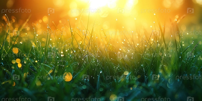 Утренняя роса на зеленой траве. Фон природы. Мягкий фокус